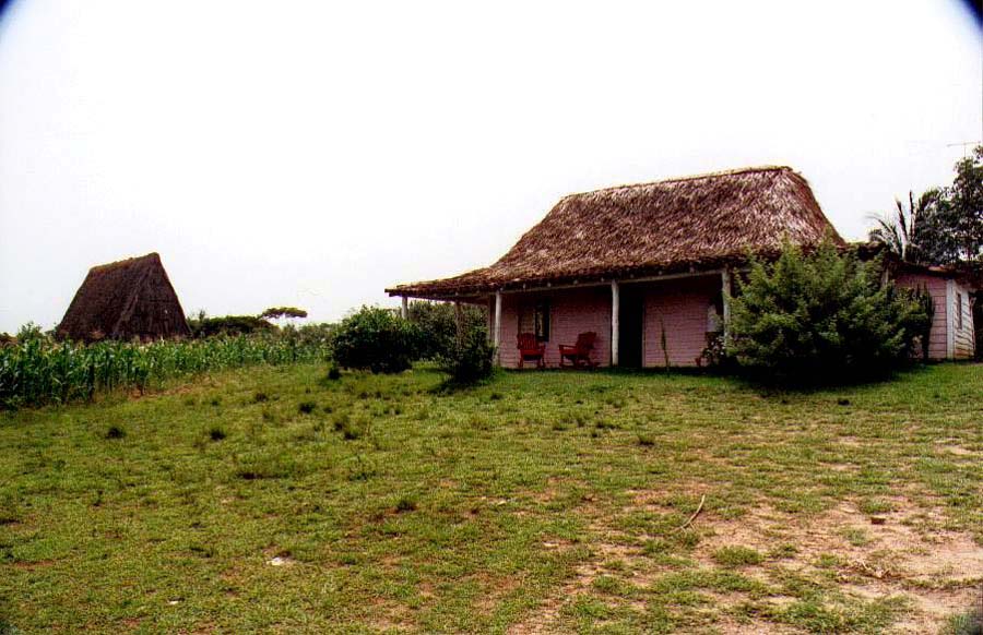 | Quand il est récolté, le tabac est mis à sècher au couvert ... les feuilles pendent comme des gigantesques chauves souris. En tant qu'ancien fumeur et atteint d'un asthme allergique, je suis rentré dans le séchoir sur la pointe des pieds ... Aucune réaction allergique, l'odeur est douce, légèrement sucrée, vraiment très agréable. Je pourrai donc profiter pleinement de la visite à la manufacture de cigares. Avant d'êtres livrées aux manufactures, les feuilles sont assemblées en bouquets. Nous avons ensuite pris congé du planteur. |