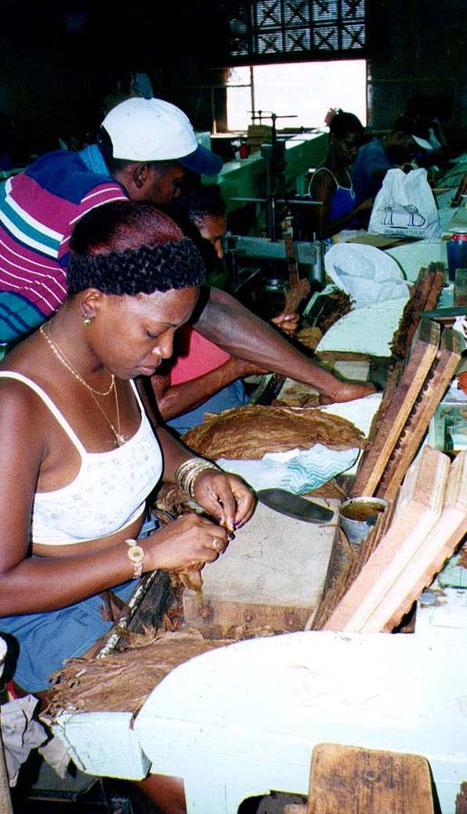Contrairement à ce qu'on pourrait penser, il n'y pas une manufacture par marque ... Chacune des différentes manufactures crée les cigares pour toutes les marques. Comme pour les grands vins chez nous, chaque marque correspond à l'assemblage bien dosé de différentes variétés de feuilles ... dans quelle mesure ceci est-ce aussi secret qu'ils le prétendent? Toujours est-il qu'on nous a affirmé que, si les ouvriers savaient pour quelle marque ils travaillaient, ils n'avaient aucune connaissance du détail de cet assemblage.