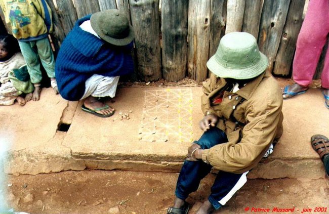 Du temps où j'étais à l'ESCA, j'avais un très bon copain malgache qui m'avait appris à jouer à ce jeu traditionnel malgache. C'est un jeu de plateau qui s'apparente un peu aux dames, jeux universel par excellence puis qu'on en trouve des variantes un peu partout et au jeu de GO japonnais. Mais il y a deux différences majeure avec ces autres jeux :