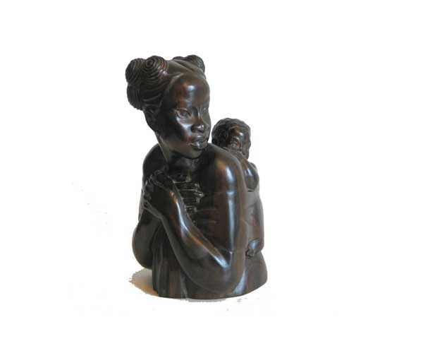 Buste de maman avec son enfant dans le dos.
