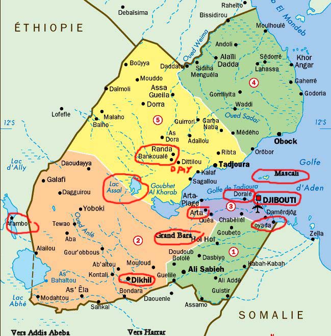 Alors pour ceux qui ne connaissent pas Djibouti, qui ont regardé sur Google Maps ou Google Earth, voici quelques repères et surtout les différences que j'observe avec le Djibouti que j'ai connu : |